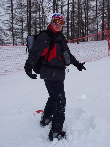 так прикольно...весь такой в обмундировании...и камера на шее, как у обычного туриста)))) как будто по улочкам старинного города ходишь а не с гор съезжаешь))))